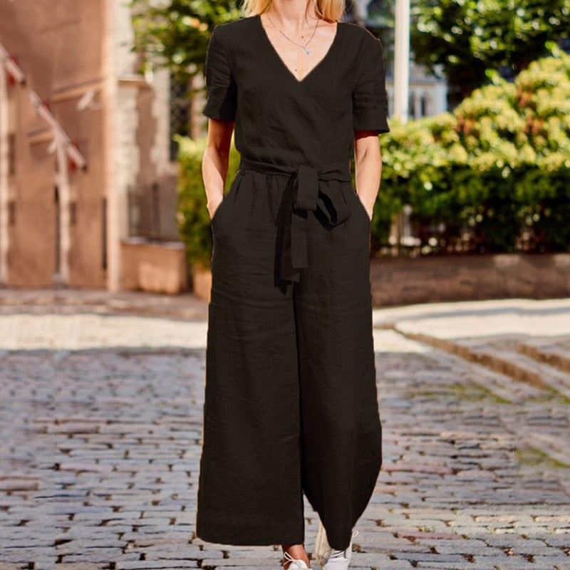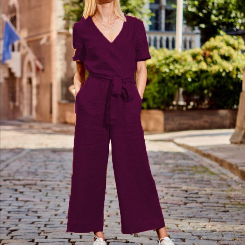 Style: Short-sleeved jumpsuit