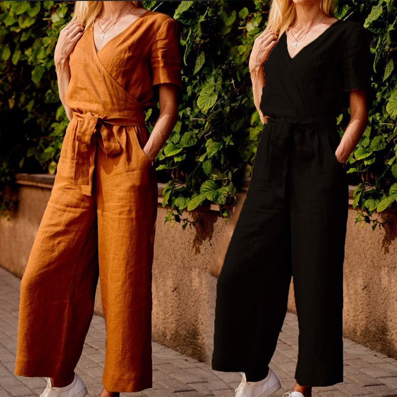 This is an elegant classic colorful fabric. Exquisite and loose linen cotton loose jumpsuit, stylish design, very suitable for everyday wear and any other casual occasions or parties.
